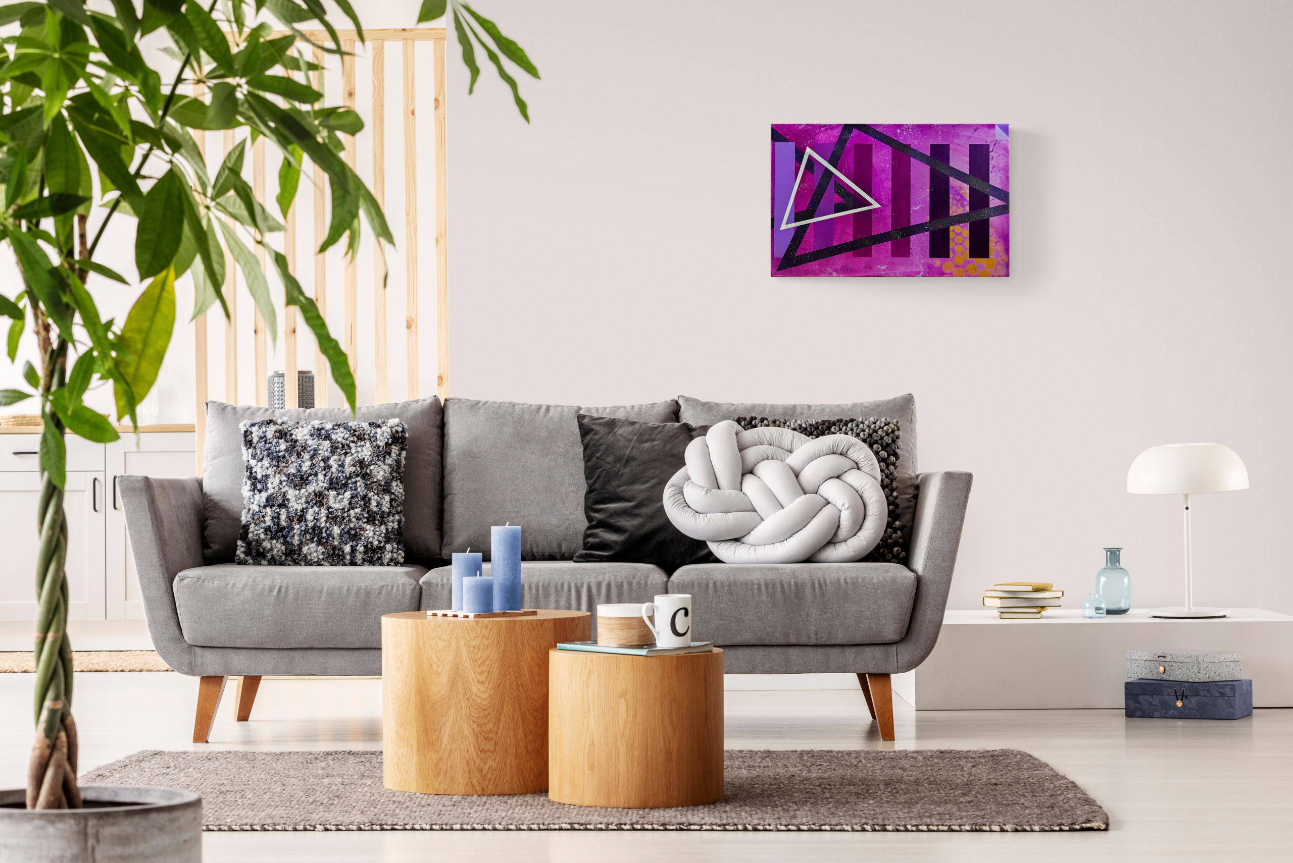 Mon coup de coeur ! Magnifique peinture moderne et originale aux nuances violettes, elle sera vous donnez de la couleur dans votre intérieure.