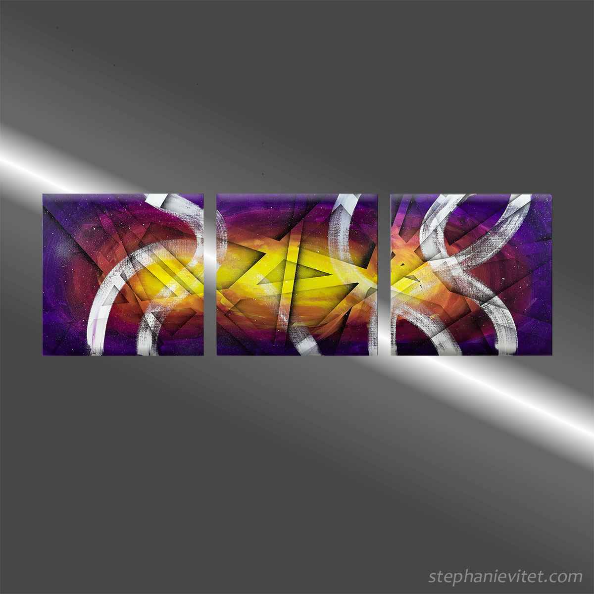Ce magnifique Triptyque mettra de la couleurs dans votre intérieur ! Cette peinture abstraite est peut-être porteuse d’un message tout comme la Déesse Iris.