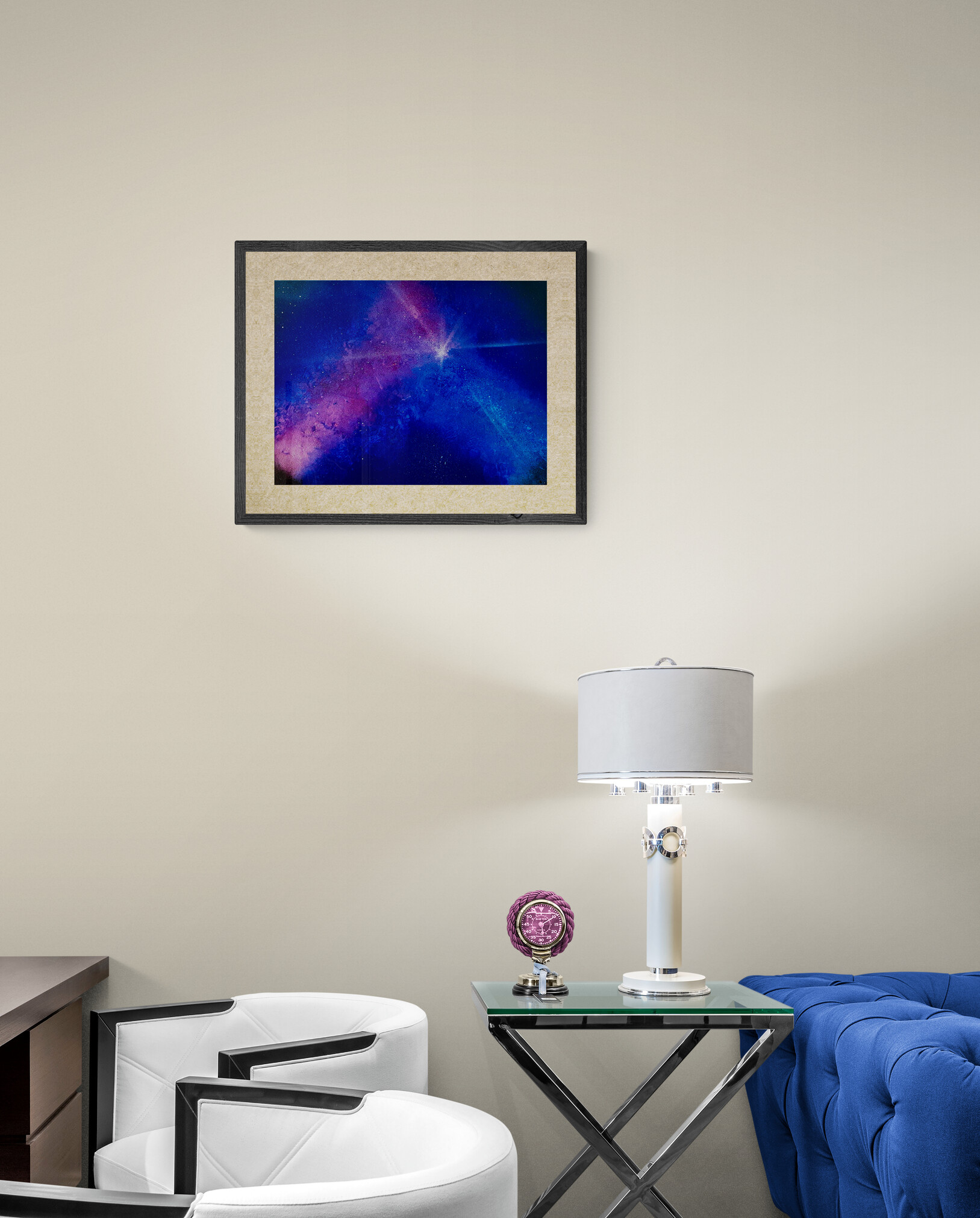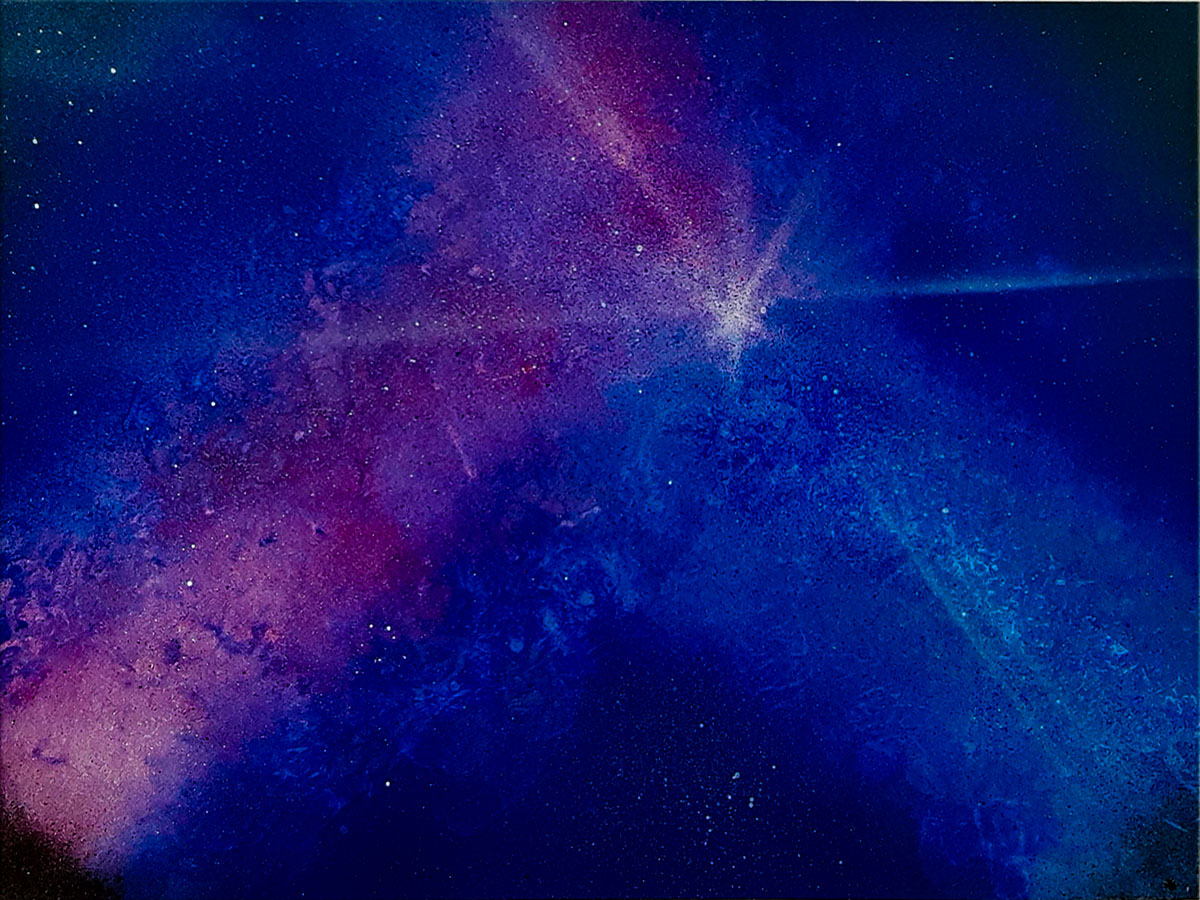 Peinture mystérieuse et envoûtante qui laisse place à l’imagination, laissez-vous transporter vers les étoiles ! Oeuvre unique livrée avec certificat d’authenticité.