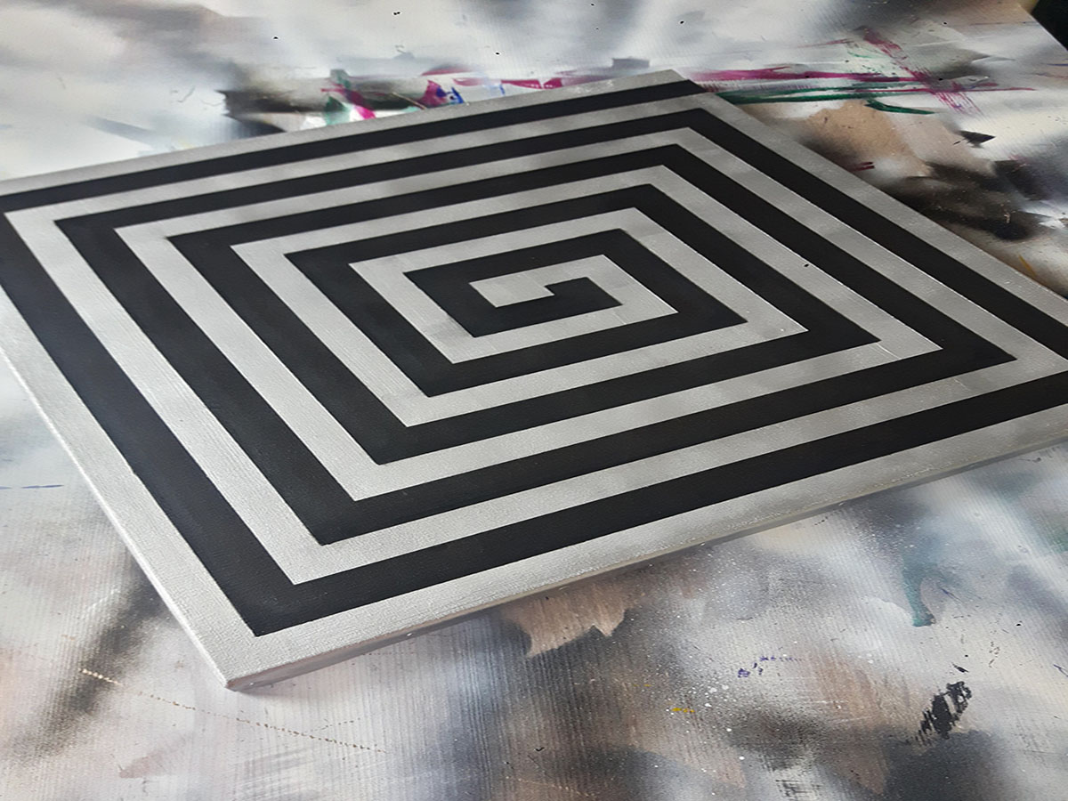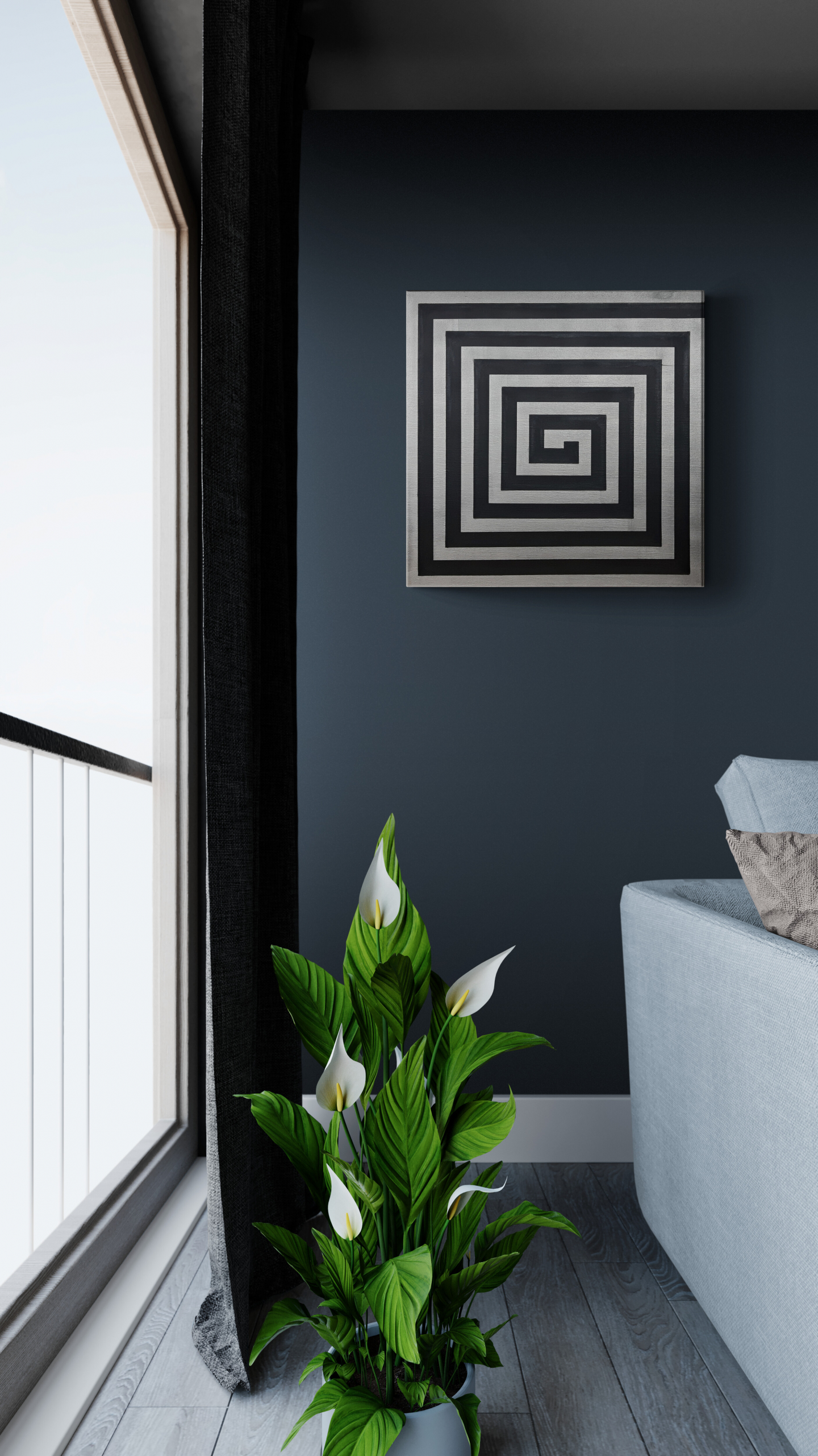 Tableau noir et argenté très lumineux, moderne et décorative au style géométrique, il sera vous ravir par sa simplicité et sa beauté.